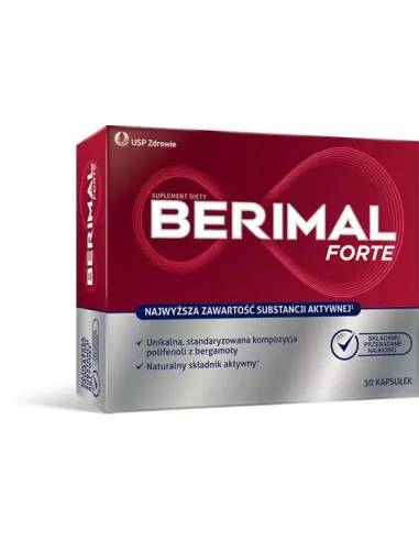 Suplement diety Berimal Forte to pierwszy w Polsce preparat o wysokiej, zgodnej z badaniami naukowymi zawartości polifenoli z bergamoty Citrus bergamia Risso, w formacie ActiBPF. Berimal Forte zapewnia "efekt bergamoty", uzupełniając codzienną dietę w przebadaną naukowo kompozycję polifenoli, a dzięki zawartości witaminy C dodatkowo działa antyoksydacyjnie, wspomaga prawidłowe funkcjonowanie naczyń krwionośnych oraz prawidłowy metabolizm.