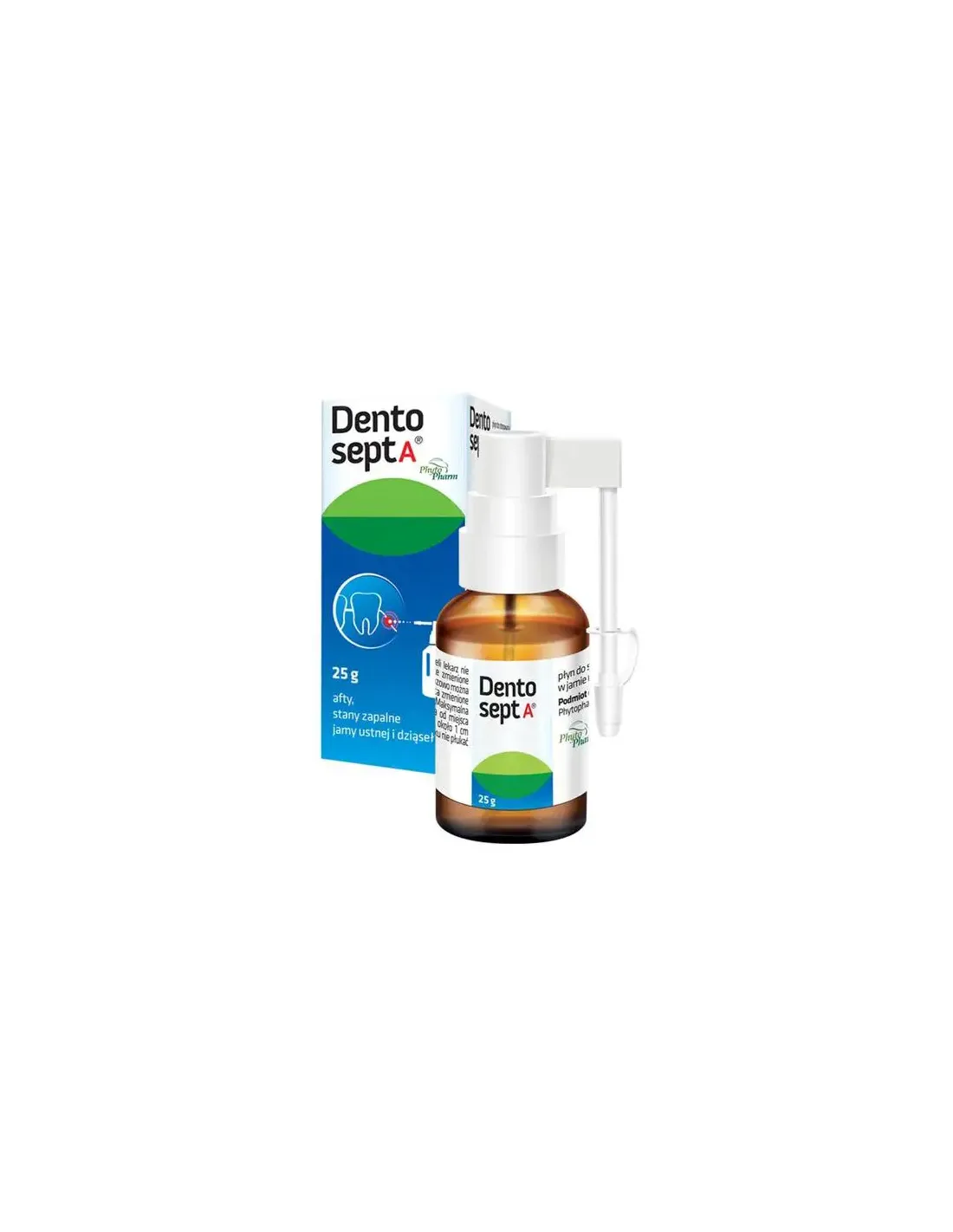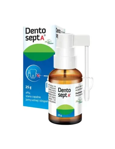 Dentosept A to złożony lek przeznaczony do stosowania w stanach zapalnych jamy ustnej. Zastosowane w nim surowce roślinne wykazują działanie w szerokim zakresie objawów: posiadają właściwości przeciwzapalne, odkażające, przeciwbakteryjne i ściągające co udokumentowane zostało w danych bibliograficznych. Zawarta w leku benzokaina charakteryzuje się działaniem znieczulającym.