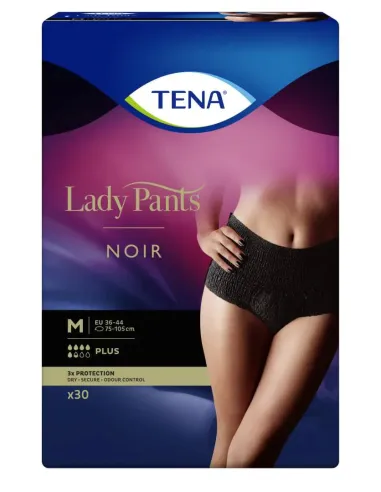 Nie musisz już wybierać pomiędzy ochroną a stylem. TENA Lady Pants Noir to elegancka bielizna chłonna w kolorze czarnym, zapewniająca skuteczną ochronę przy nietrzymaniu moczu w stopniu od umiarkowanego do natężonego. Zapewnia niezwykłą dyskrecję dzięki temu, że wyglądem przypominają prawdziwą bieliznę i są czarne – zarówno wewnątrz, jak i na zewnątrz. Wykonana z oddychającego, miękkiego materiału utrzymuje się pewnie na bieliźnie, a dzięki niezawodnemu wkładowi chłonnemu o poziomie Plus, który błyskawicznie wiąże nawet duże ilości moczu i neutralizuje nieprzyjemny zapach, masz uczucie suchości i świeżości, i czujesz się kobieco.