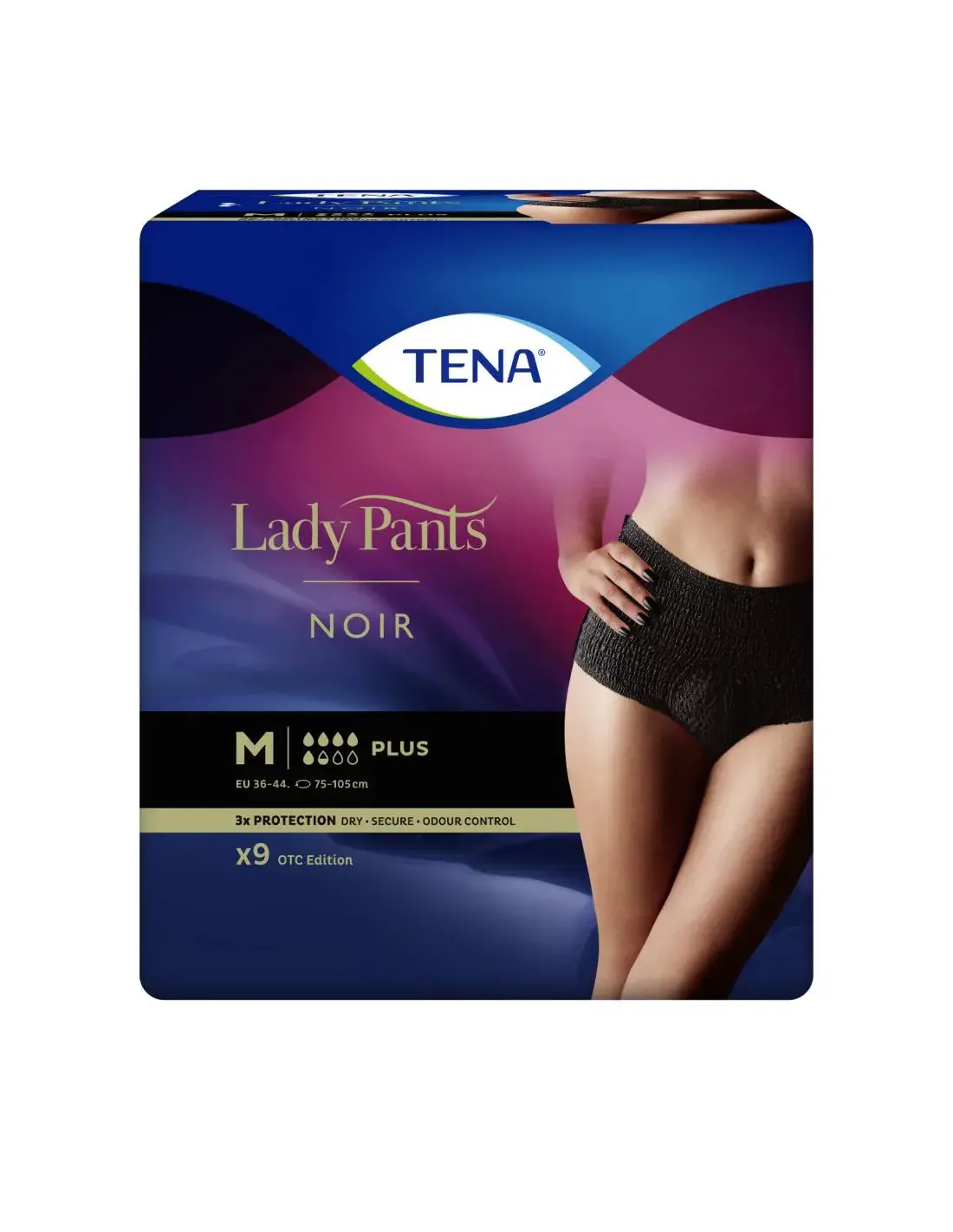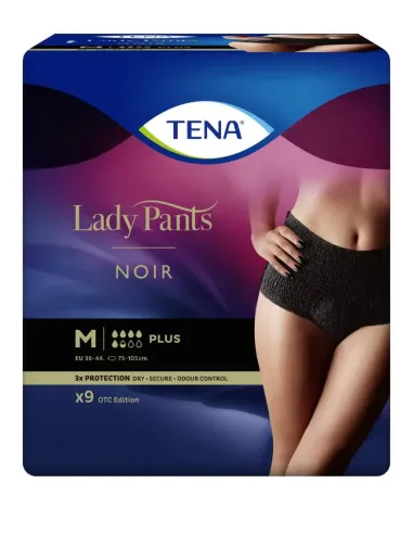 Nie musisz już wybierać pomiędzy ochroną a stylem. TENA Lady Pants Noir to elegancka bielizna chłonna w kolorze czarnym, zapewniająca skuteczną ochronę przy nietrzymaniu moczu w stopniu od umiarkowanego do natężonego. Zapewnia niezwykłą dyskrecję dzięki temu, że wyglądem przypominają prawdziwą bieliznę i są czarne – zarówno wewnątrz, jak i na zewnątrz. Wykonana z oddychającego, miękkiego materiału utrzymuje się pewnie na bieliźnie, a dzięki niezawodnemu wkładowi chłonnemu o poziomie Plus, który błyskawicznie wiąże nawet duże ilości moczu i neutralizuje nieprzyjemny zapach, masz uczucie suchości i świeżości, i czujesz się kobieco.