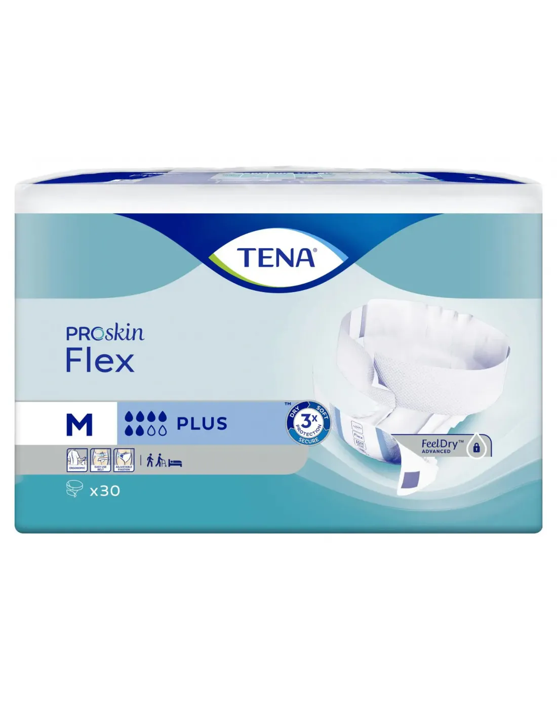 TENA Flex ProSkin to pieluchomajtki z pasem mocującym, które, w przypadku wycieku moczu, chłoną mocz do wnętrza wkładu chłonnego oraz utrzymują go w jego wnętrzu dzięki specjalnemu superabsorbentowi.