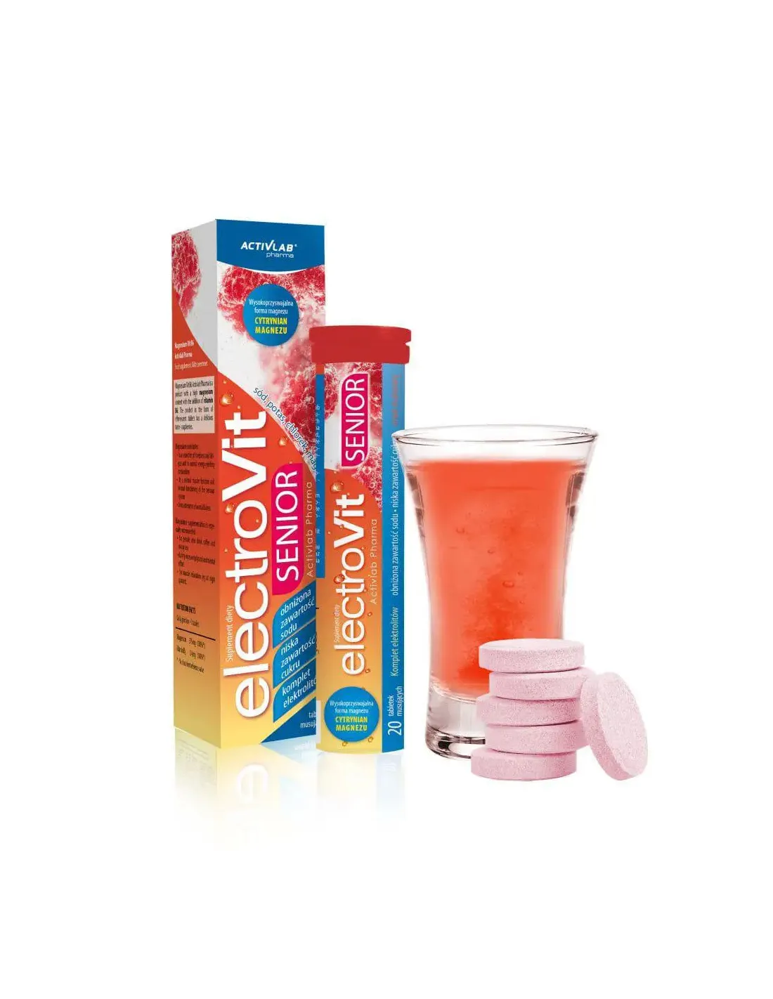 ElectroVit SENIOR Activlab Pharma to specjalnie opracowany zestaw elektrolitów, dopasowany do potrzeb osób starszych. Ma obniżoną zawartość sodu* i niski poziom cukru, co jest szczególnie istotne dla osób z nadciśnieniem i cukrzycą.