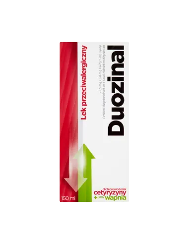 Duozinal to syrop przeciwalergiczny zawierający dwie substancje czynne: dichlorowodorek cetyryzyny oraz chlorek wapnia. Lek jest przeznaczony dla dorosłych i dzieci od 2. roku życia, stosowany w łagodzeniu objawów alergicznego zapalenia błony śluzowej nosa oraz przewlekłej idiopatycznej pokrzywki.