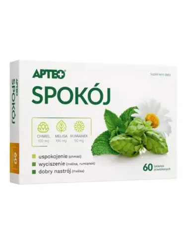 - 1 tabletka - Wyciąg z melisy - 100 mg, Wyciąg z chmielu - 100 mg, Wyciąg z rumianku - 50 mg.