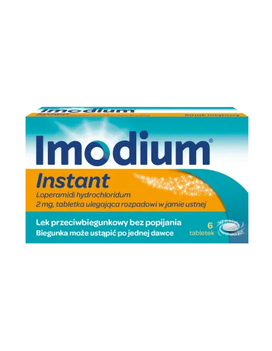Imodium Instant to lek przeciwbiegunkowy zawierający loperamid, dostępny w formie tabletek ulegających rozpadowi w jamie ustnej. Przeznaczony jest dla dorosłych i dzieci powyżej 6. roku życia.