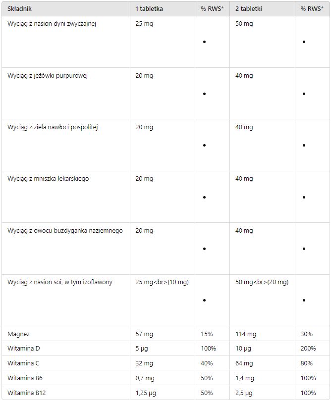 - Wyciąg z nasion dyni zwyczajnej (Cucurbita pepo) – 25 mg