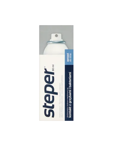 Steper to przeciwgrzybiczy aerozol do stóp i paznokci o pojemności 80 ml, przeznaczony do pielęgnacji i ochrony skóry stóp oraz przestrzeni międzypalcowych. Szczególnie polecany dla osób narażonych na częsty kontakt z grzybami i bakteriami, takich jak osoby aktywnie uprawiające sport czy korzystające z miejsc publicznych, np. basenów, saun czy siłowni. Produkt łagodzi podrażnienia, swędzenie i pieczenie stóp, nawilża spękaną i łuszczącą się skórę oraz zapobiega powstawaniu nieprzyjemnego zapachu związanego z nadmierną potliwością stóp.