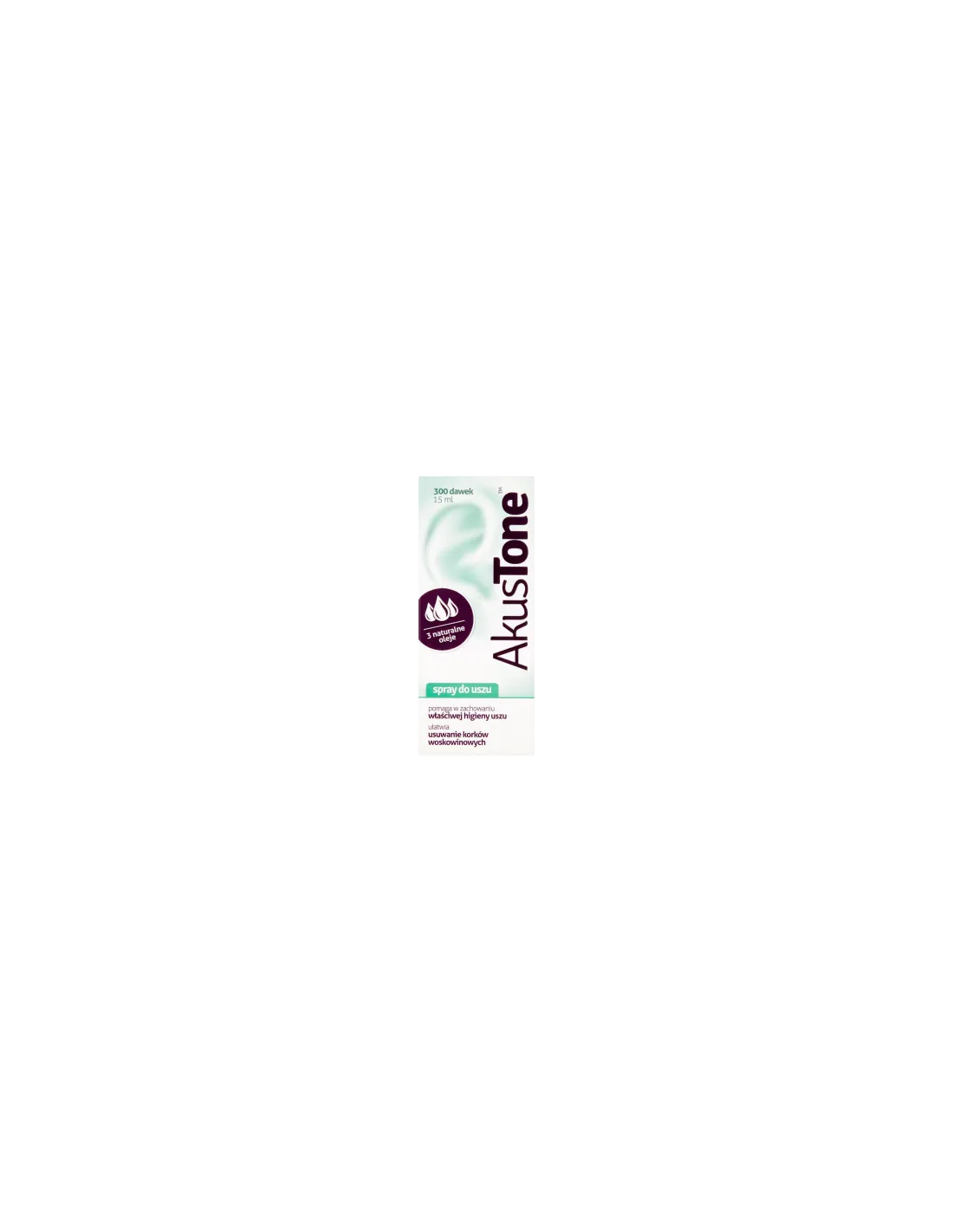 Akustone to wyrób medyczny w formie sprayu, przeznaczony do higieny uszu. Pomaga w rozpuszczaniu zalegającej woskowiny, przeciwdziała powstawaniu korków woskowinowych oraz umożliwia zachowanie właściwej higieny uszu, zwłaszcza u osób z nadmierną produkcją woskowiny, noszących aparaty słuchowe lub słuchawki. Dodatkowo, przeciwdziała zaleganiu wody w przewodzie słuchowym podczas kąpieli czy uprawiania sportów wodnych.