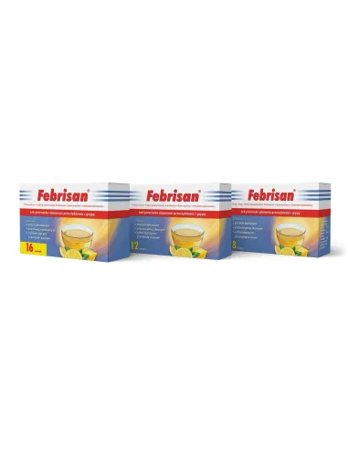 Febrisan® to lek złożony z trzech aktywnych składników. Odpowiednia kombinacja paracetamolu, fenylefryny oraz witaminy C skutecznie zwalcza wszystkie objawy przeziębienia i grypy.