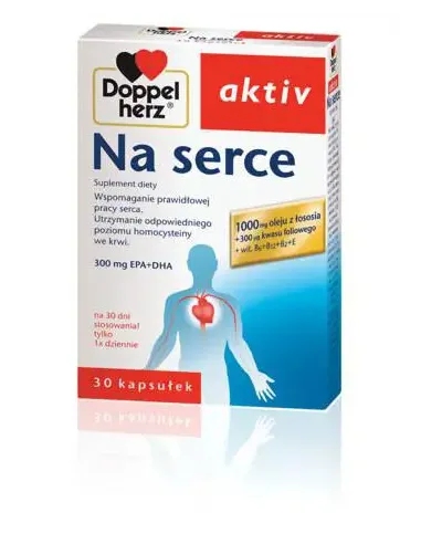 Doppelherz aktiv Na serce to suplement diety stosowany w celu wspomagania prawidłowej pracy serca i utrzymania odpowiedniego poziomu homocysteiny we krwi u osób: spożywających mało ryb morskich, w sile wieku, żyjących w stresie.