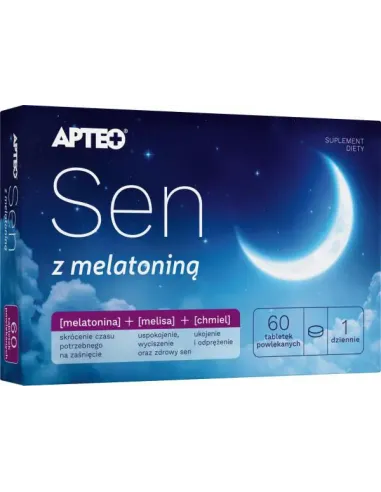 Substancja wypełniająca: celuloza; wyciąg z liści melisy (Melissa officinalis L.), DER 7:1, standaryzowany na 8% polifenoli; wyciąg z szyszek chmielu (Humulus lupulus L.), DER 5:1, standaryzowany na 5% flawonoidów; wyciąg z liści zielonej herbaty (Camellia sinensis L.), DER 50:1, standaryzowany na 40% L-teaniny; otoczka (substancja glazurująca: hydroksypropylometyloceluloza; substancja wypełniająca: polidekstroza; barwnik: dwutlenek tytanu; emulgator: glikol polietylenowy; substancja przeciwzbrylająca: talk; barwniki: indygokarmin, karminy); substancja wypełniająca: sól sodowa karboksymetylocelulozy usieciowana; substancja przeciwzbrylająca: sole magnezowe kwasów tłuszczowych; melatonina.