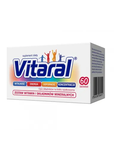 Suplement diety Vitaral to znany i lubiany od lat preparat zawierający optymalny zestaw witamin i składników mineralnych dla całej rodziny. Zalecany w stanach zwiększonego zapotrzebowania na witaminy i składniki mineralne.