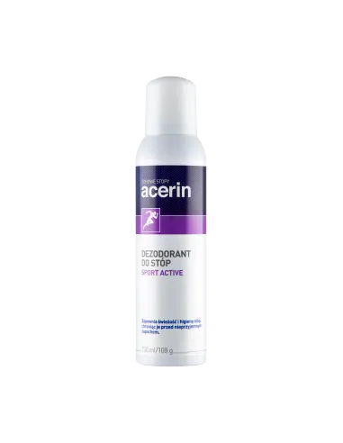 Acerin Sport Active zapewnia świeżość i higienę stóp, chroniąc ją przed nieprzyjemnym zapachem. Zapewnia odpowiednią higienę stóp i dedykowany jest osobom aktywnie uprawiającym sport. Natychmiast odświeża skórę oraz długotrwale chroni ją przed wzmożonym poceniem i przykrym zapachem. Zawiera aktywną frakcję olejku z drzewa herbacianego, który wykazuje działanie antybakteryjne. Dodatkowo nie powoduje nadmiernego wysuszania skóry stóp. Zalecany do systematycznego stosowania dla osób noszących nieprzewiewne obuwie, uprawiających sport, oraz narażonych na częsty kontakt z grzybami i bakteriami.