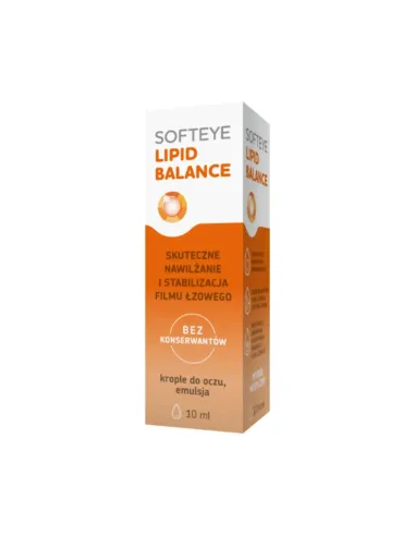 Softeye Lipid Balance to sterylne krople do oczu w postaci emulsji, opracowane z myślą o osobach cierpiących na zespół suchego oka, u których dochodzi do nadmiernego parowania filmu łzowego. Preparat ma na celu przywrócenie równowagi fizjologicznej powierzchni oka poprzez uzupełnienie warstwy lipidowej łez. Dzięki zastosowaniu zaawansowanej formuły, krople skutecznie łagodzą objawy suchości, pieczenia oraz uczucie ciała obcego pod powiekami.
