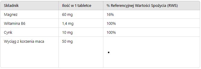 - Wyciąg z korzenia maca – 50 mg