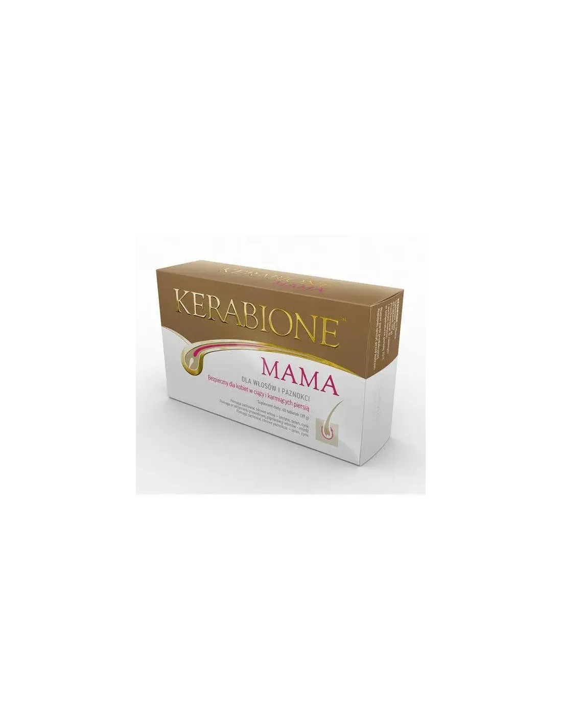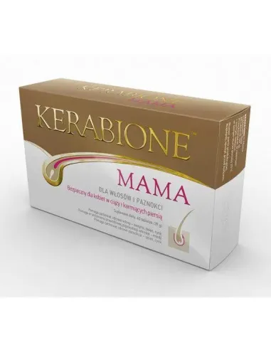 Kerabione Mama dla włosów i paznokci, zawiera aminokwasy (L-metionina, L-cysteina) składnik budulcowy włosów oraz minerały i witaminy takie jak: żelazo, kwas foliowy, jod, witaminy z grupy B, w połączeniu z biotyną, selenem, cynkiem i miedzią. A to wszystko zamknięte w dwóch powlekanych, łatwych do połknięcia tabletkach. Biotyna, selen, cynk pomagają zachować zdrowe włosy. Miedź pomaga w utrzymaniu prawidłowej pigmentacji. Selen i cynk wpływają na zachowanie zdrowych paznokci. Żelazo, foliany i witamina B12 odgrywają rolę w procesie podziału komórek. Jod wspiera prawidłową produkcję hormonów tarczycy i prawidłowe funkcjonowanie tarczycy.