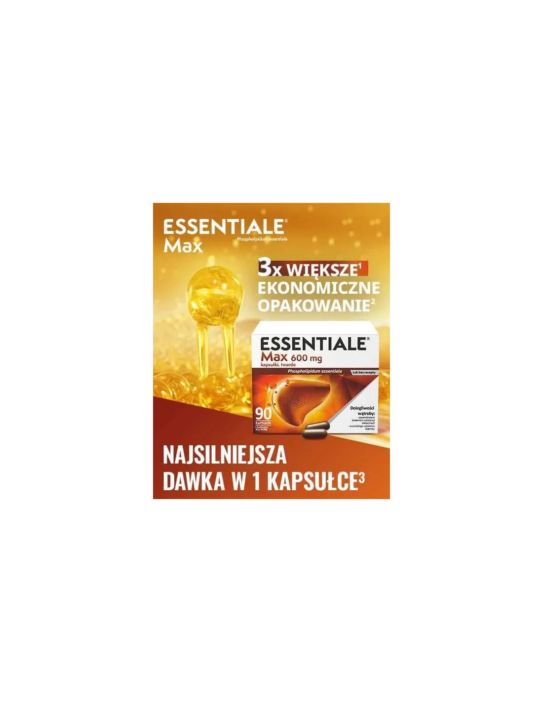 Stosując lek Essentiale Max nie zastępuje wykluczenia z diety substancji szkodliwych, powodujących uszkodzenie wątroby (np. alkoholu). Należy wyeliminować czynniki toksyczne.