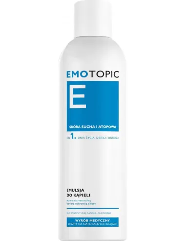 Emulsja wspomaga utrzymanie prawidłowej kondycji i funkcjonowania naskórka od 1. dnia życia. Preparat przeznaczony do przygotowywania codziennych kąpieli emoliencyjnych. W połączeniu z wodą tworzy delikatną, nawilżającą emulsję myjącą. Skutecznie oczyszcza ciało z zanieczyszczeń. Bogata formuła emulsji, oparta na unikalnym połączeniu naturalnych olejów: konopnego, canola i sojowego, przywraca naturalną barierę ochronną skóry, niwelując suchość i podrażnienia oraz zmniejszając jej podatność na szkodliwe działanie czynników zewnętrznych. Emulsja uzupełnia niedobory lipidów, zapewniając naturalną ochronę przed podrażnieniami. Zmniejsza utratę wody z naskórka (TEWL), długotrwale nawilża i natłuszcza skórę, wzmacniając jej funkcje barierowe.