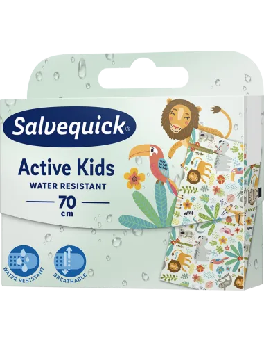 Salvequick Active Kids to wyrób medyczny w formie plastra z opatrunkiem stworzony specjalnie z myślą o dzieciach. Produkt można dzielić na mniejsze kawałki, co pozwala dostosować rozmiar plastra do rany. Kolorowa grafika, która ozdabia zewnętrzną stronę plastra pozwala odwrócić uwagę dziecka od zadrapania lub skaleczenia i szybciej zapomnieć o bólu.