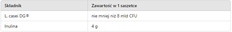 Lacticaseibacillus paracasei DG® (L. casei DG®) – żywe kultury bakterii probiotycznych, które pomagają w utrzymaniu równowagi mikroflory jelitowej, wspierając prawidłowe funkcjonowanie układu pokarmowego oraz odpornościowego.
