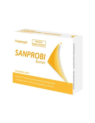 SANPROBI Barrier to nowoczesny, wieloszczepowy suplement diety o właściwościach probiotycznych, opracowany w celu wspierania integralności i szczelności bariery jelitowej. Preparat zawiera unikalną kompozycję ośmiu starannie wyselekcjonowanych szczepów bakterii, które współdziałają w celu utrzymania równowagi mikrobioty. Jest to produkt szczególnie ceniony przez osoby aktywne fizycznie, sportowców oraz osoby zmagające się z dolegliwościami wynikającymi z tzw. „przepuszczalnego jelita”, pomagając chronić organizm przed przenikaniem szkodliwych substancji i antygenów do krwiobiegu.