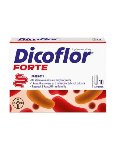Dicoflor FORTE to preparat osłonowy zawierający żywe kultury bakterii Lactobacillus rhamnosus GG. Jest to szczep o ogromnej liczbie publikacji naukowych, co przekłada się na wysoką przewidywalność jego działania i bezpieczeństwo stosowania zarówno u niemowląt, dzieci, jak i dorosłych.