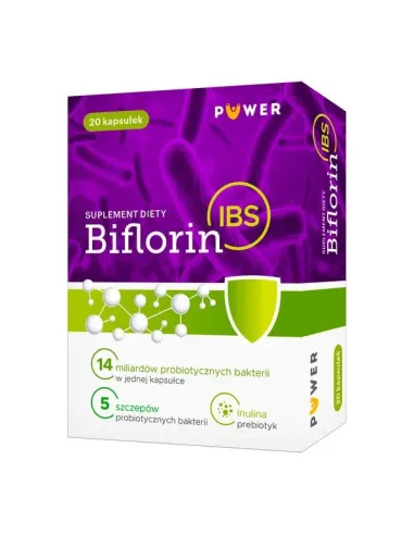 Biflorin IBS to specjalistyczny synbiotyk, który skupia się na łagodzeniu objawów charakterystycznych dla Zespołu Jelita Drażliwego (IBS). Jego unikalność polega na połączeniu najlepiej przebadanego szczepu bakterii kwasolubnych wspierających pracę jelit z dobroczynnymi drożdżakami, co tworzy kompleksową barierę ochronną i regulacyjną.