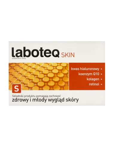 Laboteq Skin to suplement diety zawierający unikalną formułę Continuous Wrinkles Reduction (CWR), łączącą koenzym Q10, hydrolizat białek kolagenowych, kwas hialuronowy, beta-karoten oraz zestaw witamin. Składniki te wspomagają zachowanie młodego i zdrowego wyglądu skóry, poprawiają jej elastyczność oraz opóźniają procesy starzenia.