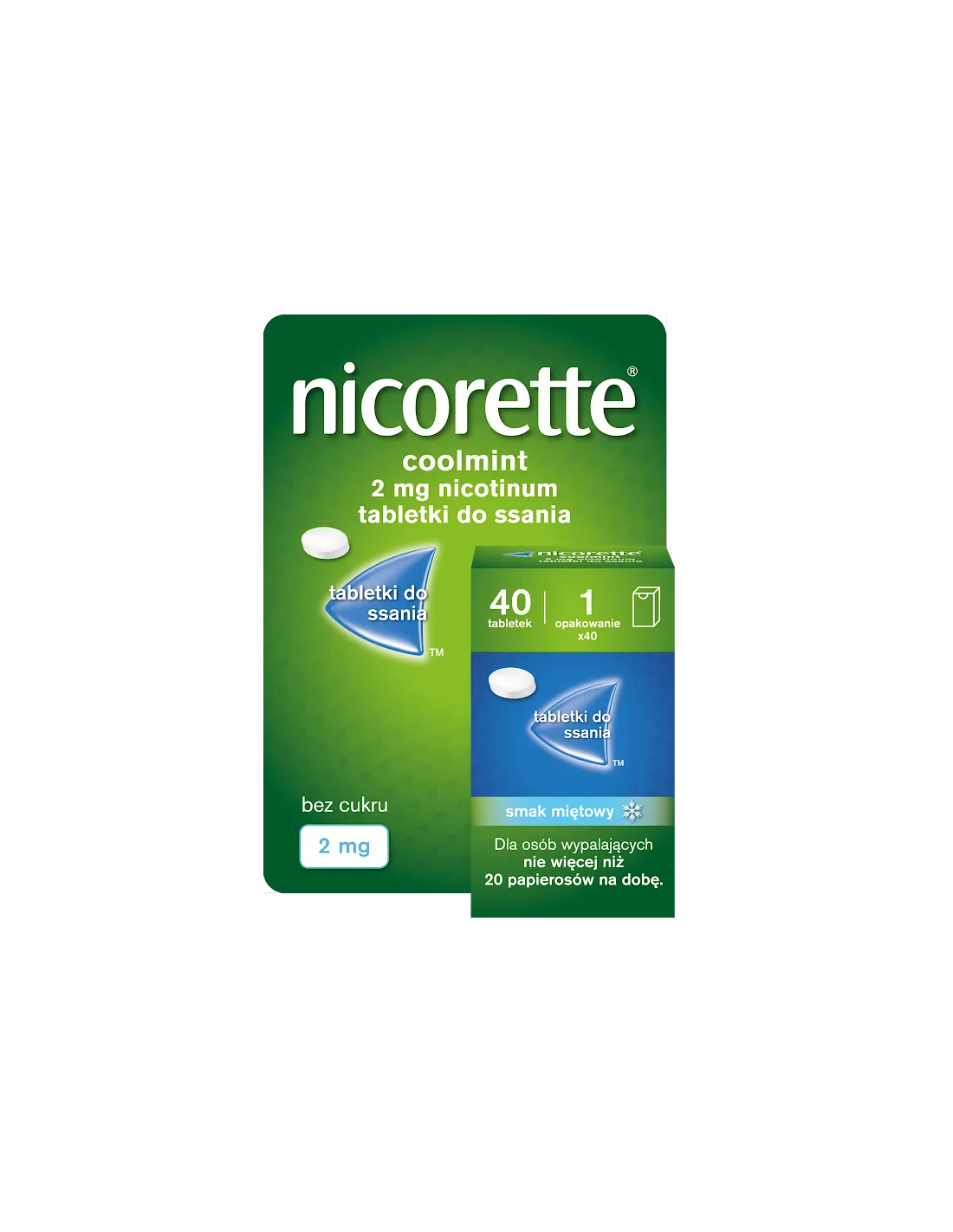 Nicorette Coolmint 2 mg to tabletki do ssania przeznaczone dla osób dorosłych pragnących rzucić palenie. Każde opakowanie zawiera 40 tabletek, z których każda dostarcza 2 mg nikotyny. Produkt pomaga łagodzić objawy odstawienia nikotyny oraz zmniejsza głód nikotynowy, wspierając proces zaprzestania palenia.