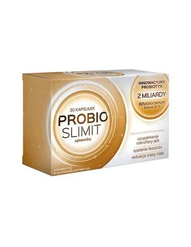 Probioslimit to suplement diety w formie kapsułek, przeznaczony dla osób dorosłych, który łączy probiotyk Bifidobacterium breve B-3 z wyciągami roślinnymi i chromem, wspierającymi proces odchudzania oraz prawidłowe funkcjonowanie przewodu pokarmowego.