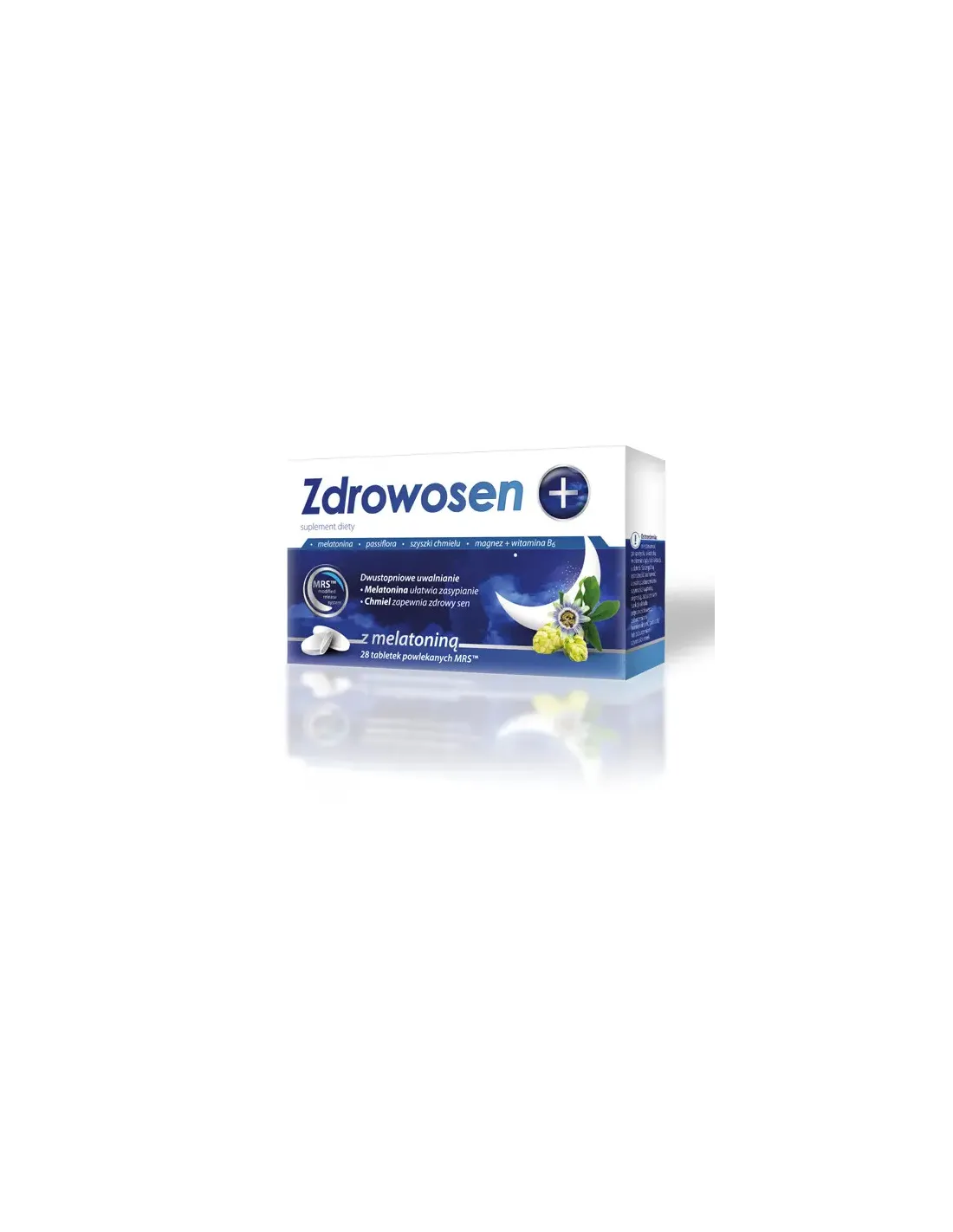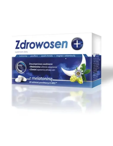 Suplement diety ZDROWOSEN+ to połączenie uspokajającej mocy ziół i ułatwiających zasypianie właściwości melatoniny.