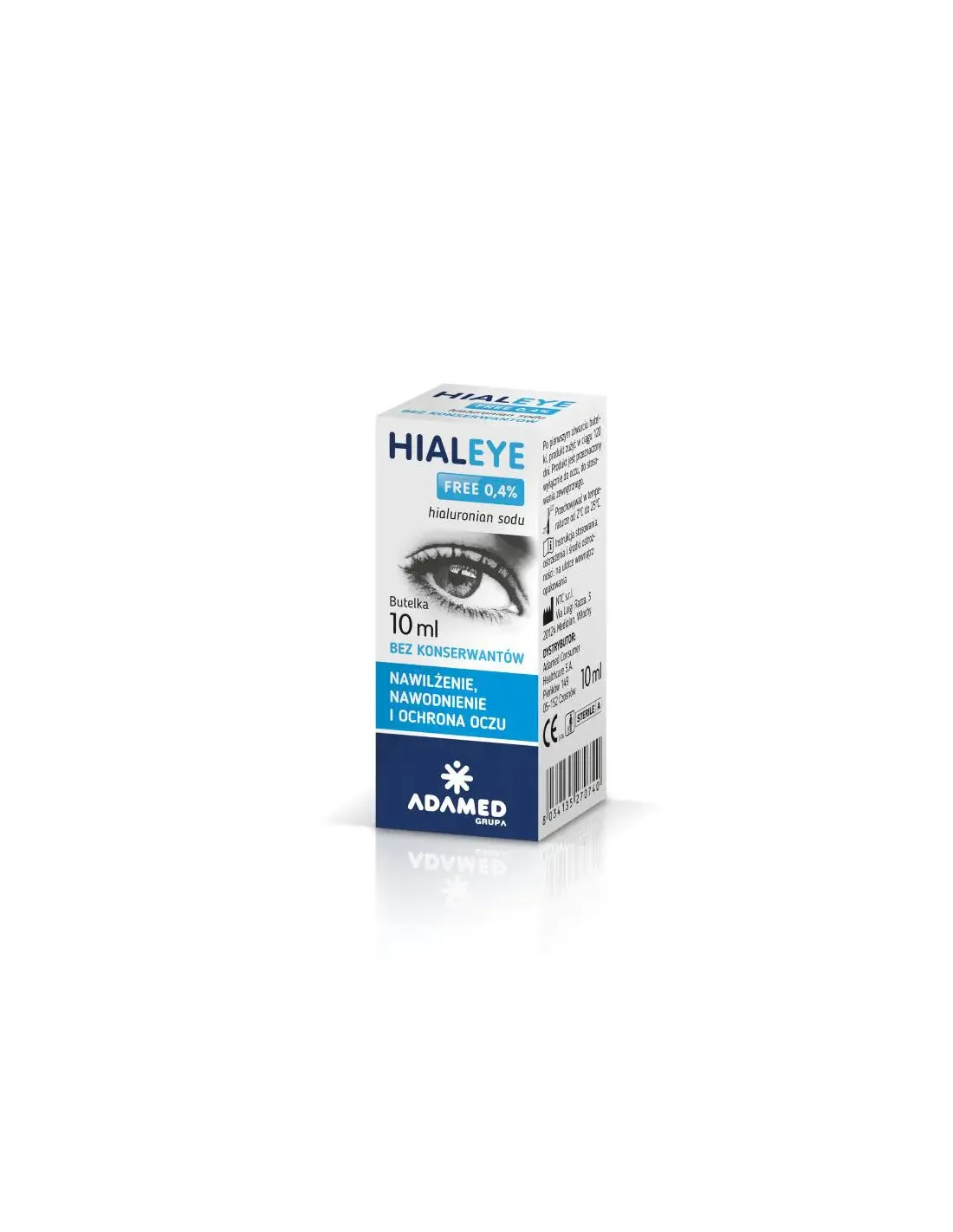Hialeye Free 0,4% bez konserwantów to roztwór do oczu o stężeniu 0,4% zawierający hialuronian sodu. Hialuronian sodu poprawia stabilność filmu łzowego i utrzymuje komfort powierzchniowych struktur gałki ocznej poprzez ich nawilżenie, nawodnienie i ochronę.