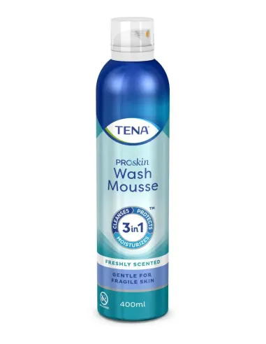 TENA Wash Mousse to delikatna pianka przeznaczona do pielęgnacji skóry osób starszych. Skutecznie oczyszcza skórę bez konieczności spłukiwania wodą. Pianka myjąca TENA Wash Mousse zapewnia łatwość aplikacji oraz efektywne oczyszczanie i nawilżanie nawet najbardziej wrażliwej skóry.