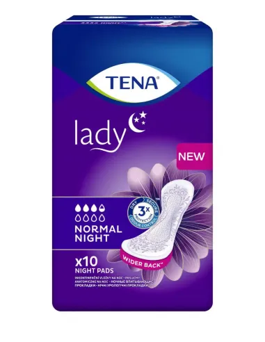 Specjalistyczne podpaski TENA Lady Normal Night polecane do codziennego stosowania w ciągu nocy przy lekkim stopniu nietrzymania moczu. Znacznie bardziej chłonne niż tradycyjne podpaski na noc. Zapobiegają powstawaniu nieprzyjemnego zapachu. Szerszy tył stanowi dodatkowe zabezpieczenie podczas snu.