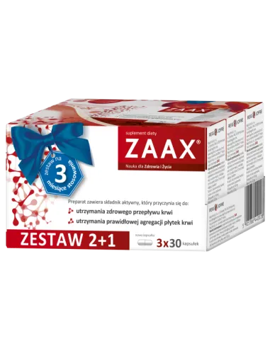Bezpieczeństwo stosowania: W przeciwieństwie do niektórych leków przeciwpłytkowych, Zaax nie wydłuża czasu krwawienia przy urazach i jest łagodny dla błony śluzowej żołądka.