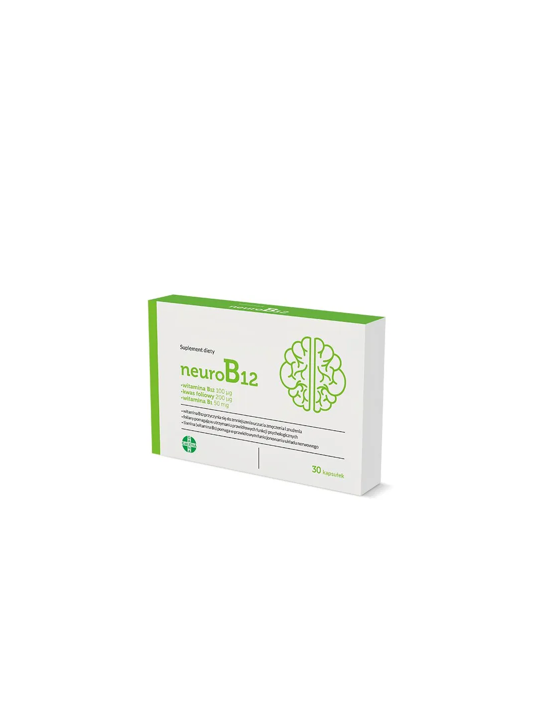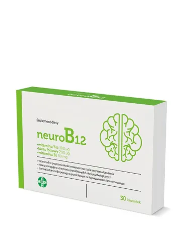 NeuroB12 to suplement diety w formie kapsułek, opracowany w celu uzupełnienia codziennej diety w wysoką dawkę witaminy B12 (cyjanokobalaminę). Preparat jest przeznaczony dla osób dorosłych, które chcą zadbać o prawidłowe funkcjonowanie układu nerwowego, krwionośnego oraz utrzymać odpowiedni metabolizm energetyczny. Składniki produktu wspierają organizm w stanach zwiększonego wysiłku intelektualnego oraz w okresach odczuwalnego zmęczenia i znużenia.