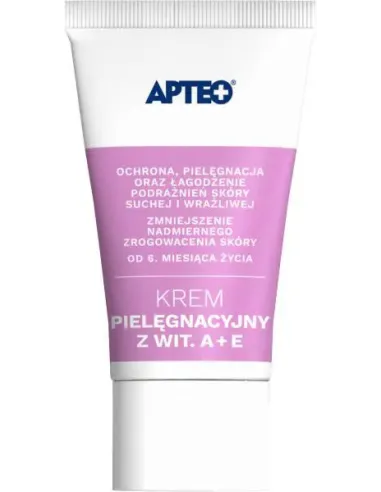Produkt zawiera witaminy A i E oraz prowitaminę B 5 (D-Pantenol). Krem pielęgnacyjny z wit. A+E działa kojąco i pielęgnuje skórę całego ciała. Polecany na miejsca szczególnie narażone na przesuszenia, takie jak dłonie, łokcie, pięty, kolana. Zawiera cenne składniki pielęgnujące skórę: hipoalergiczną lanolinę, oliwę z oliwek, masło shea. Tworzy barierę ochronną utrzymującą odpowiedni poziom nawilżenia skóry.Dzięki zawartości takich substancji jak: hypoalergiczna lanolina, oliwa z oliwek, masło Shea, krem tworzy barierę ochroną, utrzymującą odpowiedni poziom nawilżenia skóry. Krem pomaga chronić również przed niekorzystnym działaniem czynników zewnętrznych takich jak: wiatr, suche powietrze, detergenty. Codzienne stosowanie daje efekt delikatnego natłuszczenia, wygładzenia i uelastycznienia skóry. Doskonale nadaje się do stosowania przez całą rodzinę, jest przeznaczony również dla dzieci i niemowląt od 6 miesiąca życia