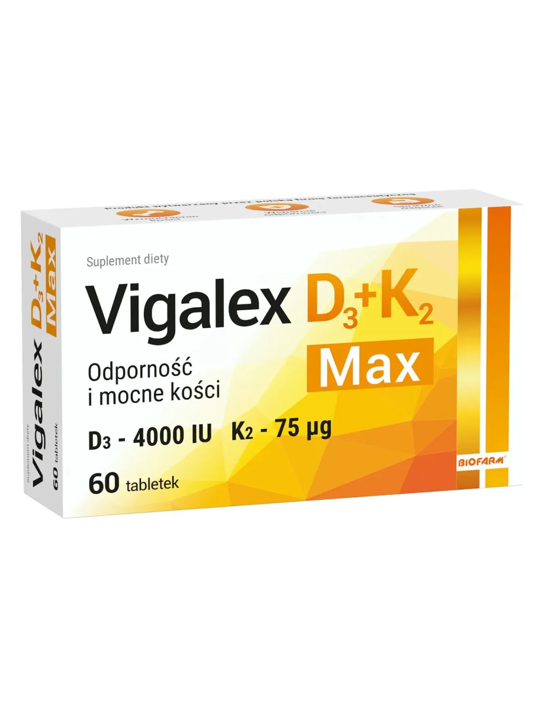 - Suplement diety Biofarm Vigalex D3 + K2 Max nie może być stosowany jako substytut (zamiennik) zróżnicowanej diety.