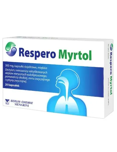 Lek Respero Myrtol rozrzedza wydzielinę w górnych drogach oddechowych i ułatwia jej odkrztuszenie. Ma działanie przeciwdrobnoustrojowe i przeciwzapalne.