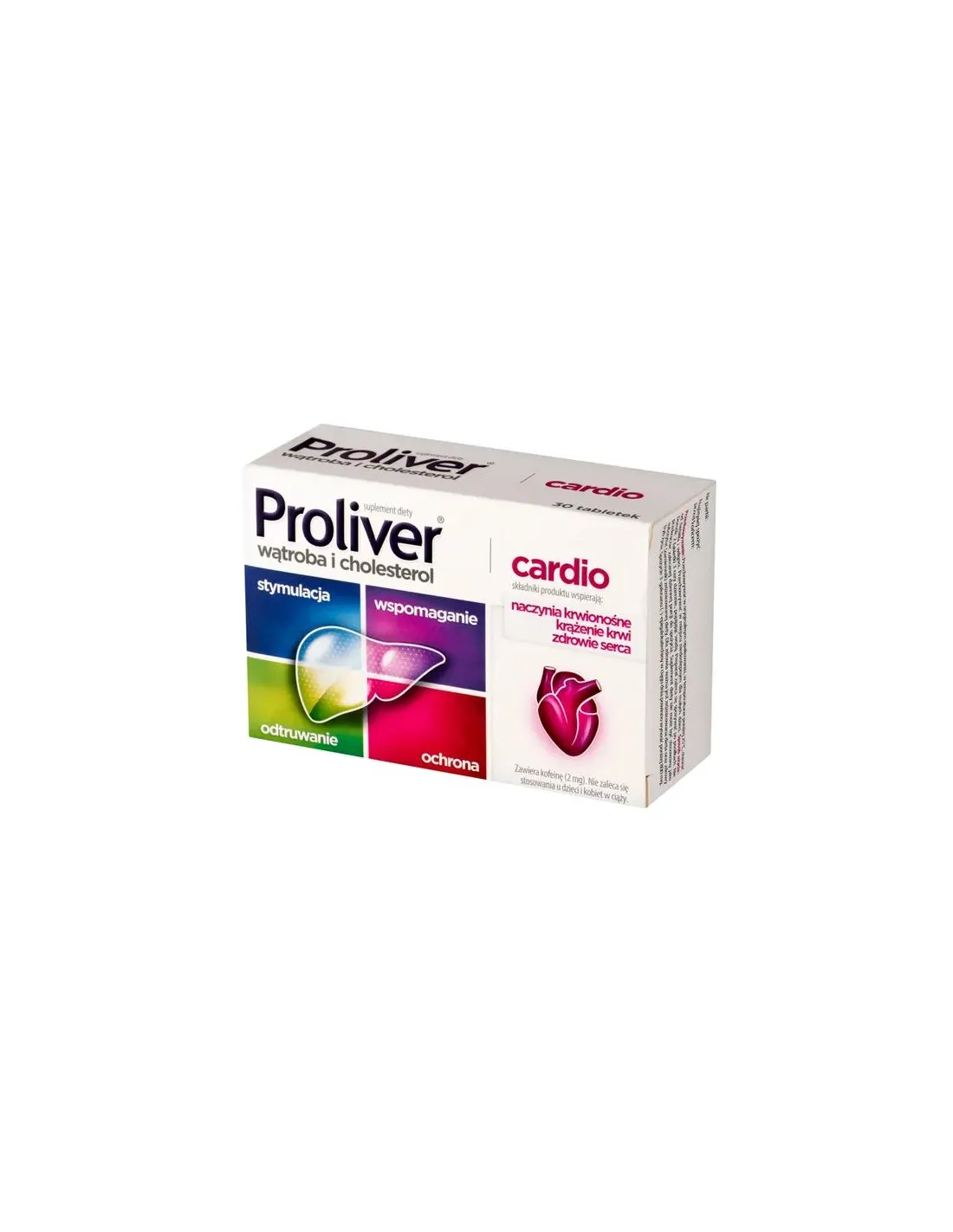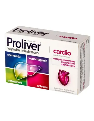 Proliver Cardio to suplement diety w postaci kapsułek, który zawiera wyciągi roślinne, cholinę oraz L-asparaginian L-ornityny. Produkt przeznaczony dla osób dorosłych.