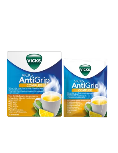 Vicks AntiGrip Complex można stosować w przypadkach, kiedy musisz pozostać aktywny podczas choroby, ponieważ nie usypia.